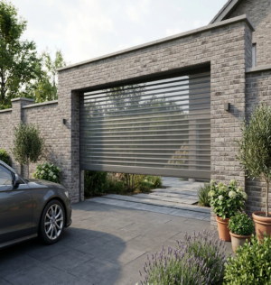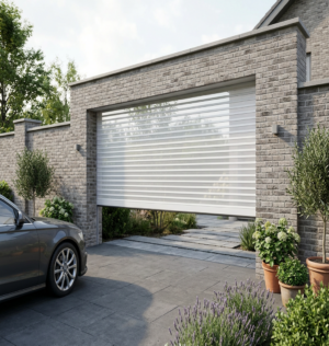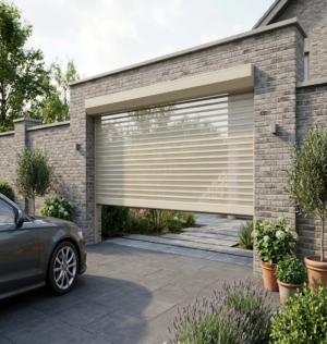 Все рольставни представляют собой полотно, состоящее из отдельных ламелей: оно перемещается вверх и вниз по боковым направляющим шинам. В закрытом состоянии полотно полностью перекрывает дверной или оконный проем, а в открытом – убирается в короб, установленный над ним.