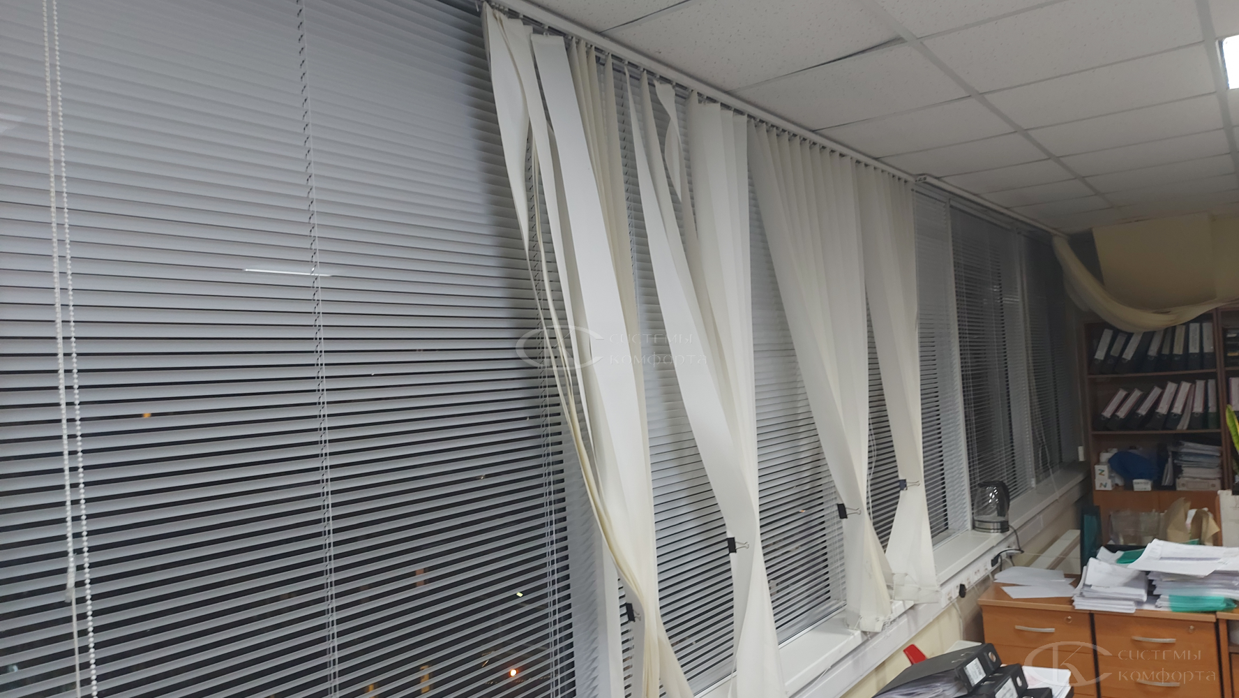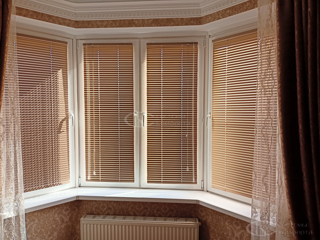 Компания «Системы комфорта» предлагает горизонтальные жалюзи с цветными алюминиевыми ламелями и перфорацией (опционально). Краска, которая используется в производстве, сертифицирована (экология), не выгорает на солнце и не истирается весь срок службы изделия.