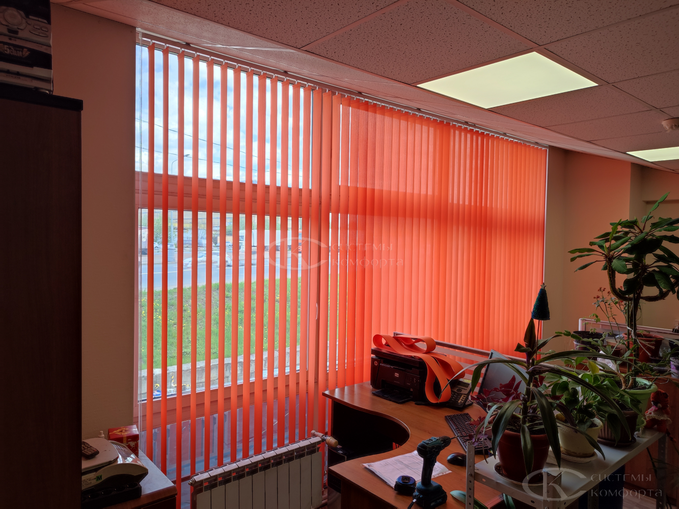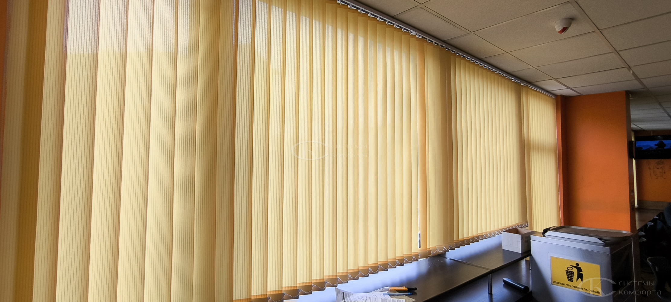 Вертикальные тканевые жалюзи — недорогой вариант солнцезащитной системы для дома или офиса. Они хорошо защищают помещение от солнца. Недостатком такой системы считаются быстрая поломка при неаккуратном обращении и загрязнение ткани при проветривании помещения. Но если очистить от грязи и пыли их не получается, то задача решается путем недорогой замены ламелей. Из преимуществ можно отметить огромный выбор цветов и фактуры, а также возможность нанесения фотопечати: картинки или логотипа. Бесплатный замерщик поможет выбрать модель и определиться с решением. Персональный менеджер поможет сделать предварительный расчет.